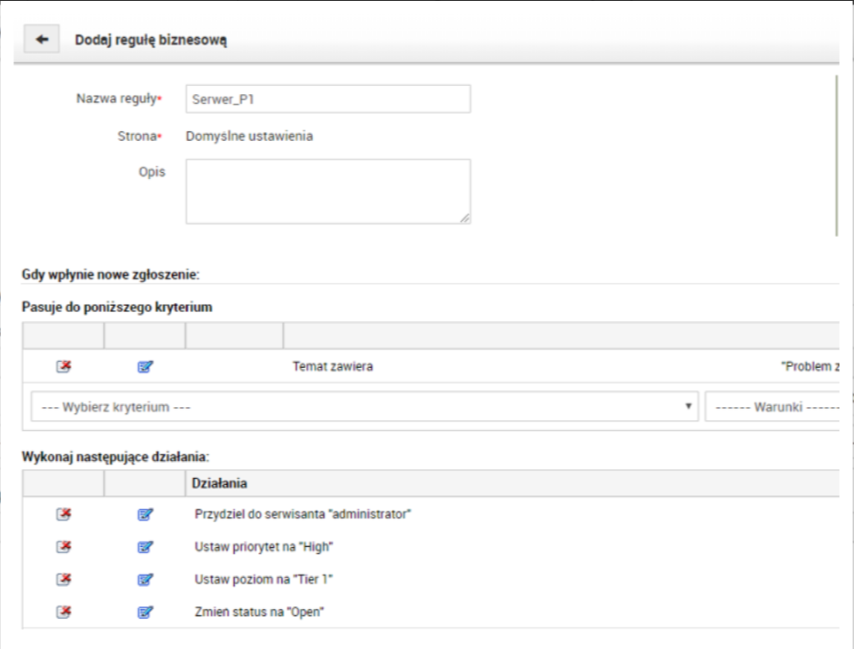 Przykładem automatyzacji, która pozwoli nam dostosować system do wymagań ustawy jest automatyczne ustawienie priorytetu oraz serwisanta na podstawie wybranego pola „Problem związany z”