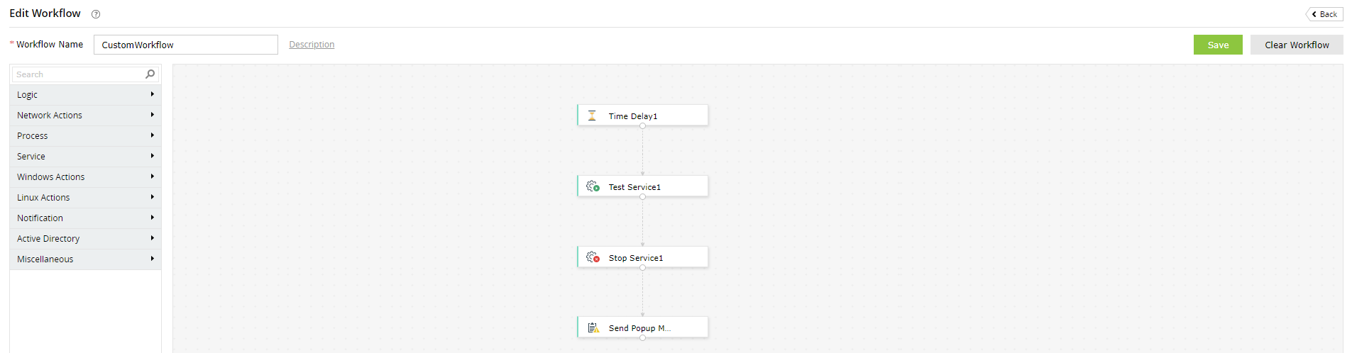 W ramach wystąpienia niechcianej akcji, poza wygenerowaniem alarmu i powiadomieniem administratora, Log360 może również przeprowadzić jedną z wielu akcji lub wykonać customowy skrypt.