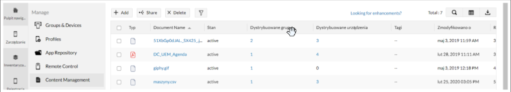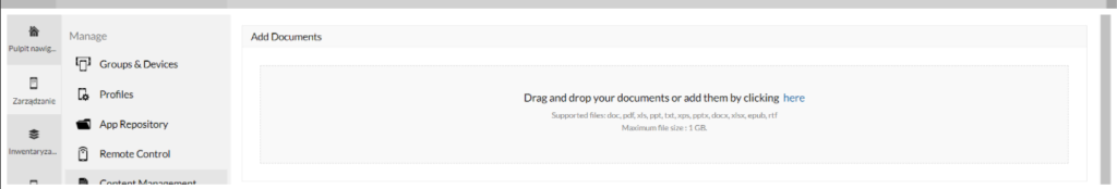Podczas codziennego obiegu dokumentów bywają takie sytuacje, że organizacja chce udostępnić dane szerszej grupie odbiorców jednocześnie. Można to oczywiście zrobić mailowo, jednak używając Mobile Device Manager Plus umieszczenie zdalnie danych na konkretnych urządzeniach/grupach urządzeń to żaden problem. Do tego celu służy funkcja Content Management.