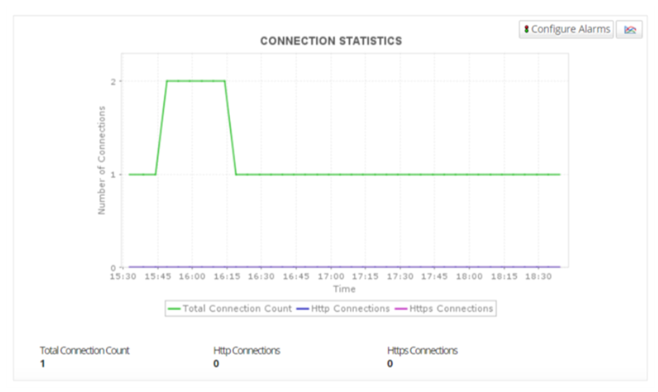 Connection and session stats: Program posiada również statystyki połączeń w formie tabel oraz graficznej, aby bez problemu uzyskać dostęp do informacji. System umożliwia zarządzanie obciążeniem serwera za pomocą harmonogramu zapytań połączeń oraz sesji HTTP, HTTPS. Oprócz tych statystyk do dyspozycji są informacje odnośnie blokad, dzięki którym w łatwy sposób można je zwolnić, jeśli stopień opóźnienia jest wysoki.