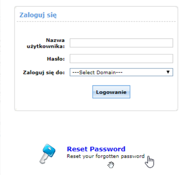ADSelfService Plus działa w postaci portalu Internetowego, przez który możemy zrestartować hasło do domeny. By to zrobić, użytkownik musi udać się pod ustalony adres np: restarthasla.domena.pl i wybrać opcję restartu hasła: