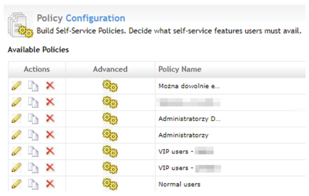 Mamy możliwość tworzenia wielu polityk, dla odrębnych grup.
